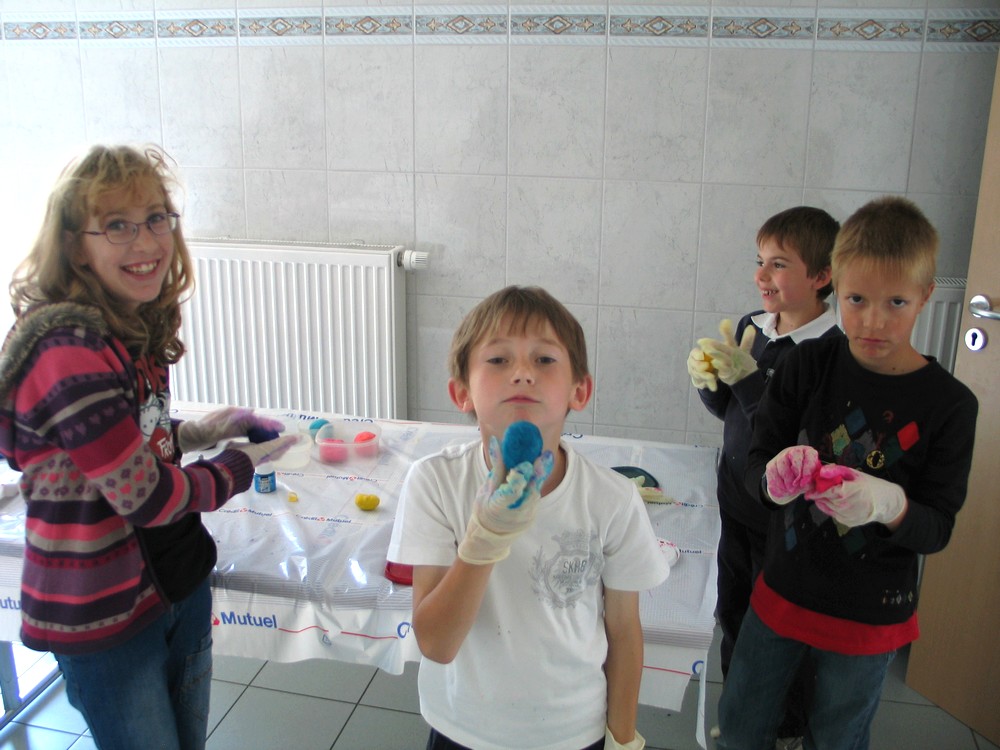 Les gants sont nécessaires avec cette pâte à modeler très colorée