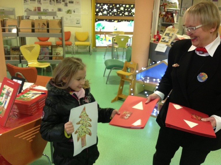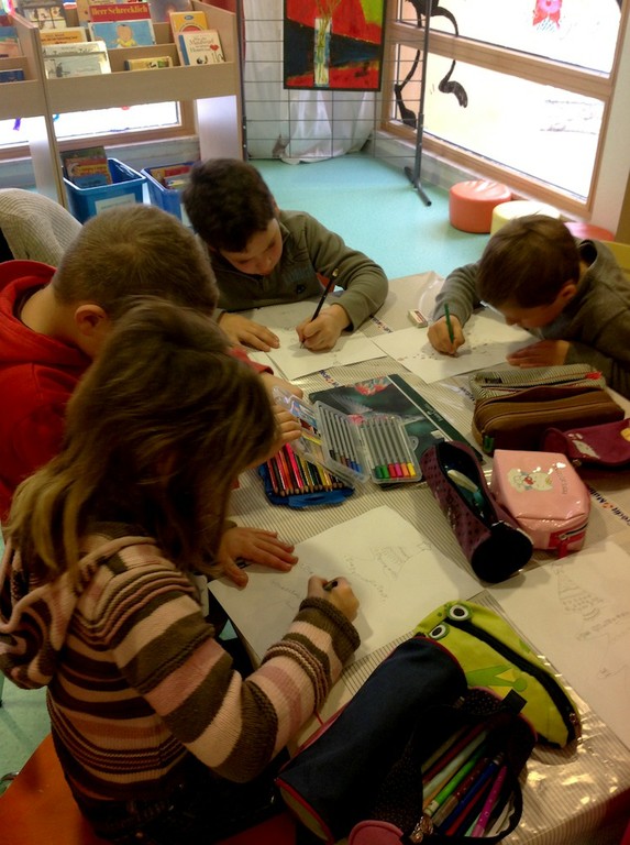 Nouvelle venue de Yo Tuerlinx-Rouxel à la médiathèque Nathan Katz autour de son livre "Le Noël d'un jeune Sapin". Atelier avec les élèves de Mme Christine Arnold Haby (Ecole de Steinsoultz)