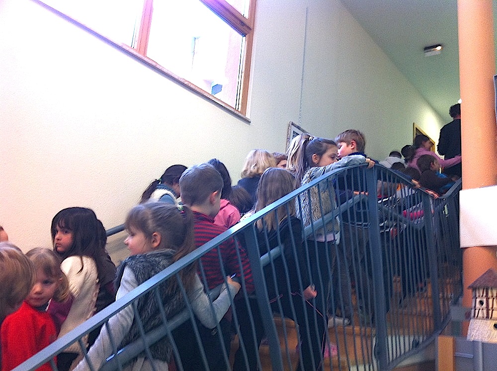 Vous êtes ici : Accueil Flashback Reportages 2013 Photos flashback 2013 Photos du vernissage de l'expo ITAVU de Bernard Ruff le 26 mars 2013 à la médiathèque La joyeuse équipe sur l'escalier de la médiathèque