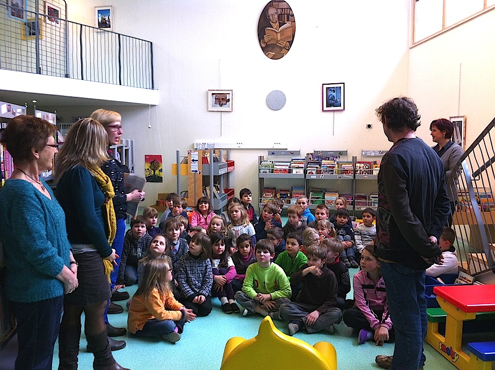 Les enfants avec, à gauche, Mmes Herrmann, Roch et Vallin et, à droite, Mme Hagenbach et Bernard Ruff