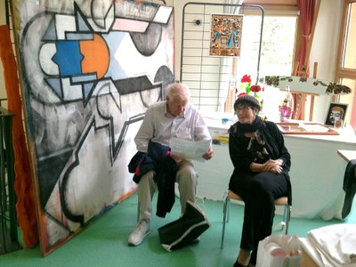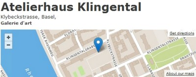 Ci-dessous l'artiste dans son atelier, la façade et l'emplacement dans Bâle de l'Atelierhaus Klingental :