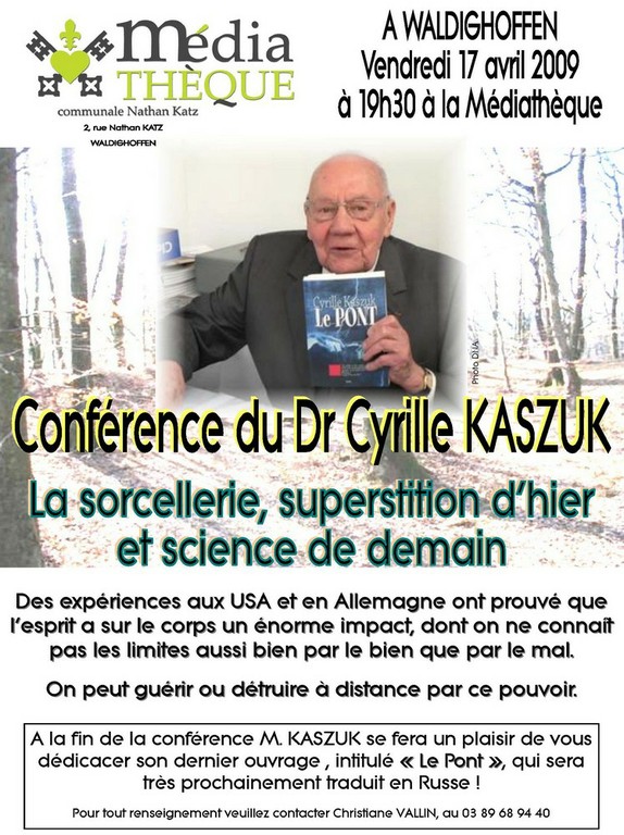- Voici l'affiche présentant la conférence du Dr Cyrille Kaszuk à la Médiathèque de Waldighoffen