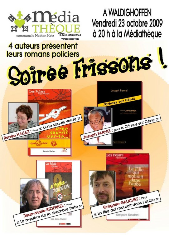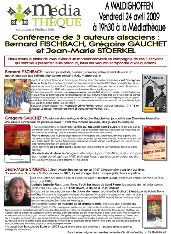 Affiche de la conférence, le 24 avril 2009, de 3 auteurs alsaciens