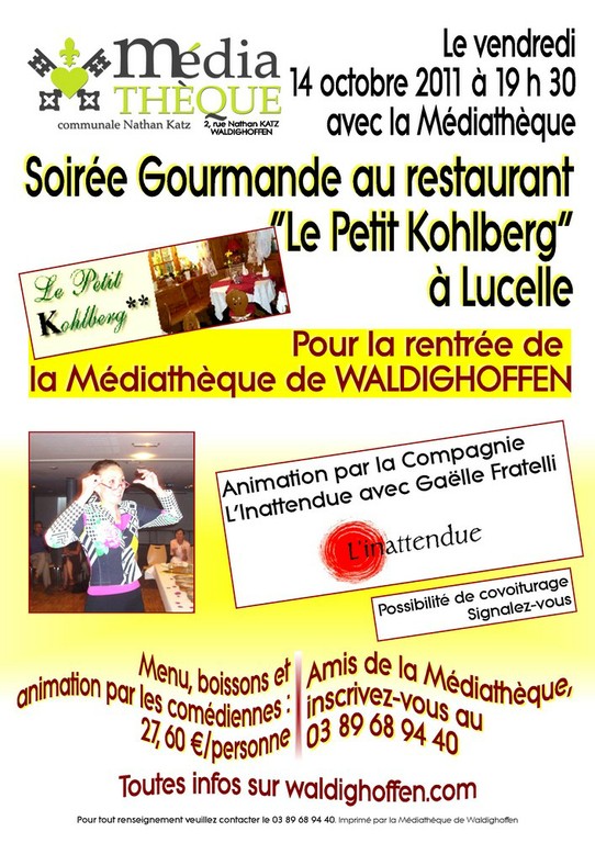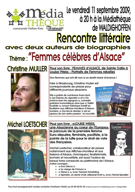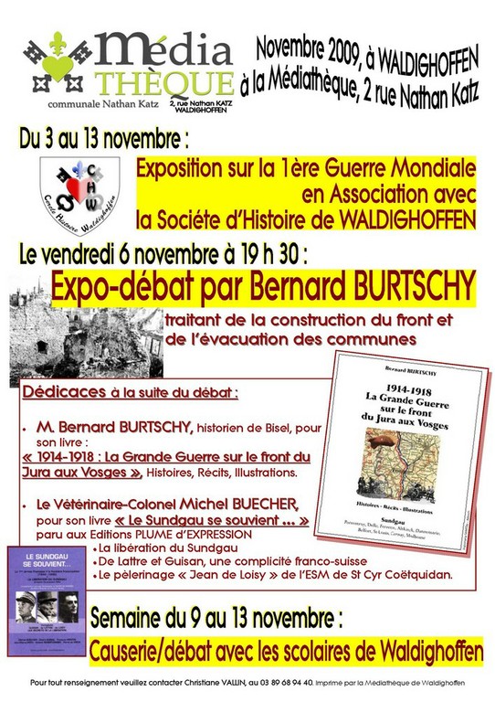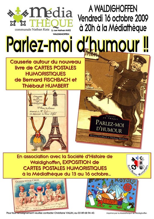 - La Médiathèque de Waldighoffen, avec le Cercle d'Histoire, présente une causerie autour du nouveau livres de cartes postales humoristiques de Bernard FISCHBACH et Thiébaut HUMBERT.