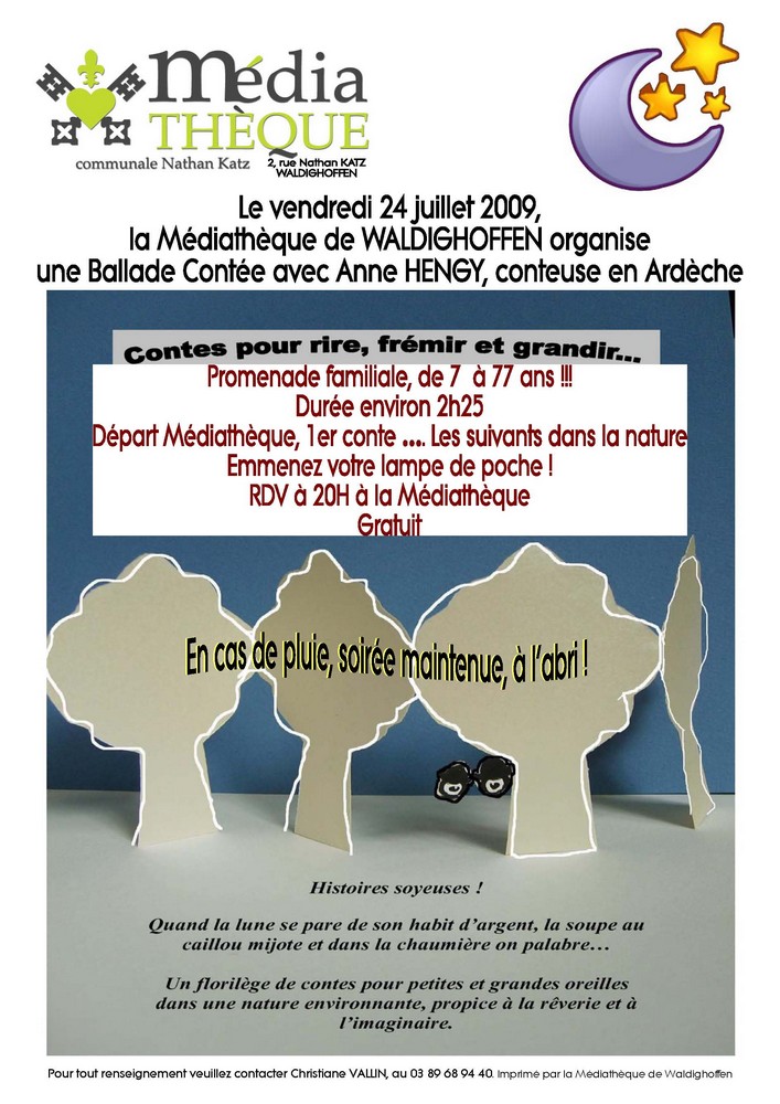 Vous êtes ici : Accueil Prochaines Animations Photographies événements Affiche Ballade contée avec Anne HENGY le 24 juillet 2009