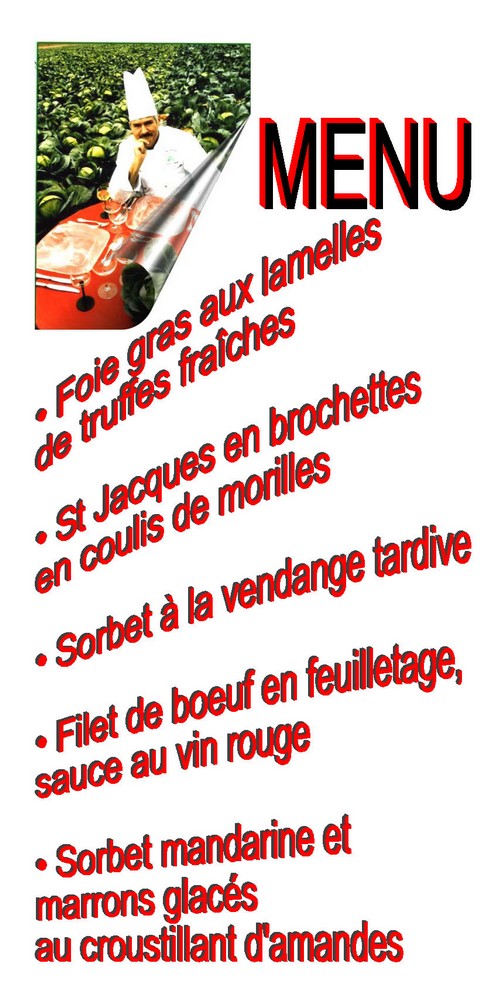 Le 3 décembre 2009, Tony Hartmann est convié à la médiathèque de Waldighoffen pour concocter le menu que vous voyez