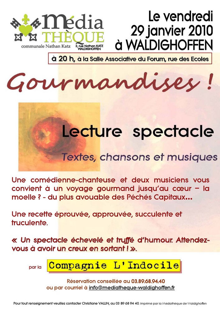 Vous êtes ici : Accueil Prochaines Animations Photographies événements Affiche Gourmandises le 29 janvier 2010