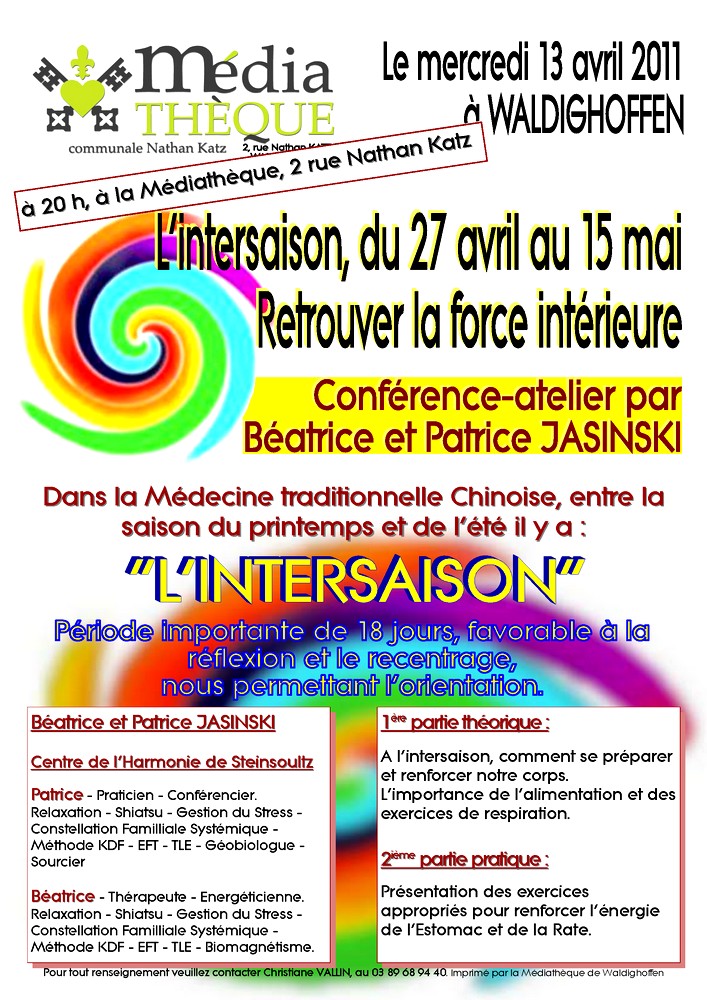 Affiche pour la conférence Jasinski le 13 avril 2011 à la Médiathèque de Waldighoffen