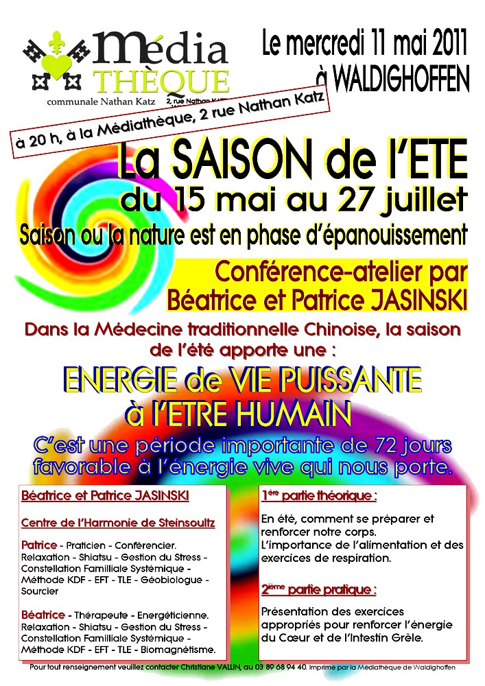 Affiche présentant la conférence de Patrice et Béatrice JASINSKI le 11 mai 2011 à la médiathèque de Waldighoffen