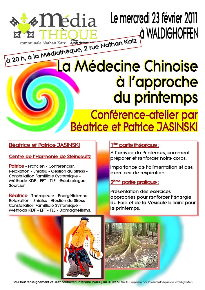 Affiche de la conférence de Béatrice et Patrice JASINSKI le 23 février 2011 à la Médiathèque