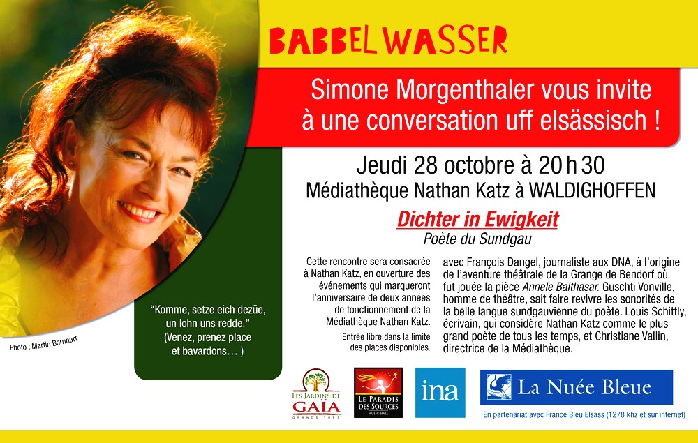 BABBELWASSER : invitation à la soirée animée par Simone MORGENTHALER à la Médiathèque Nathan Katz