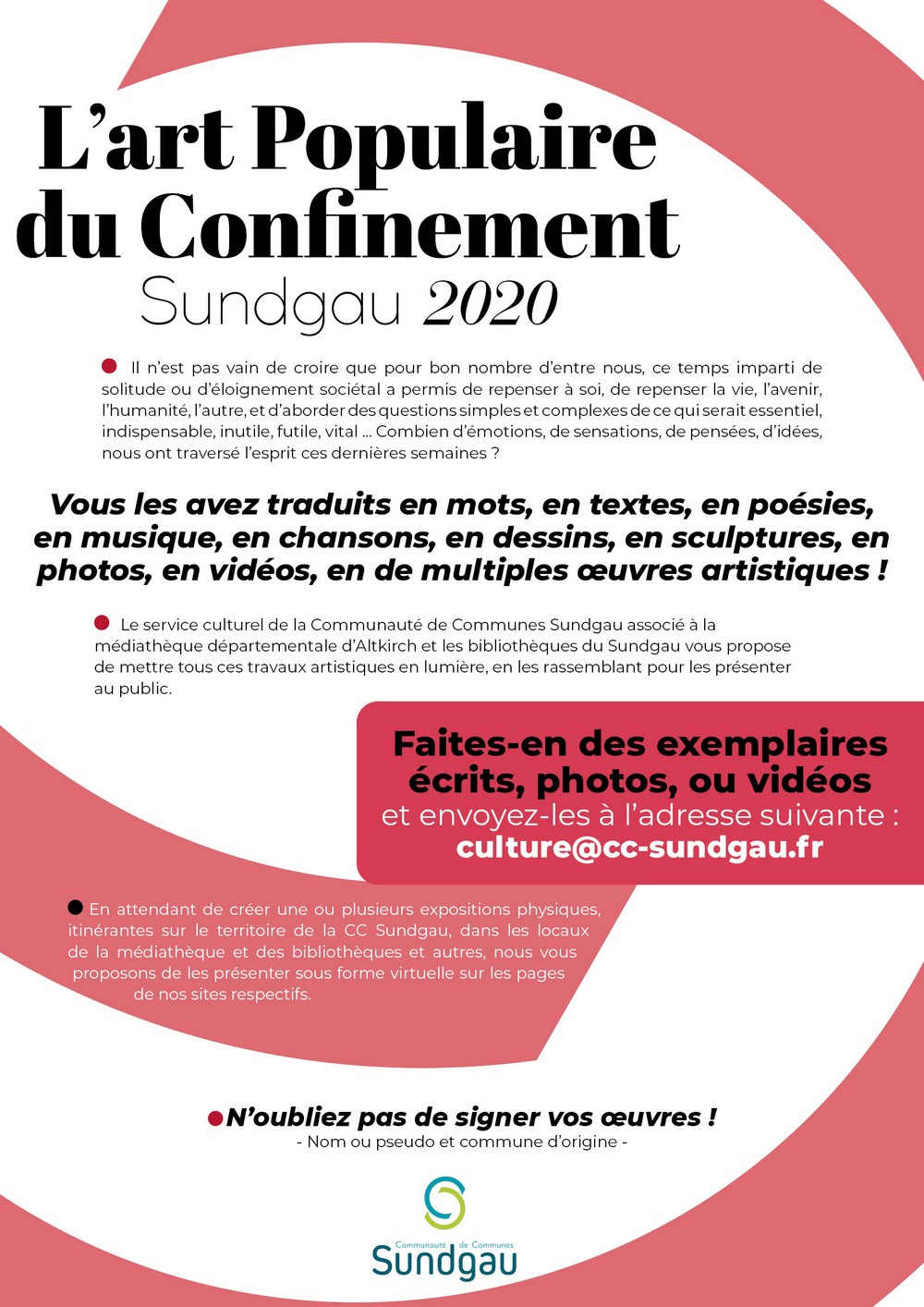 Affiche 2 de l'événement "L'art populaire du confinement" à l'initiative de la Communauté de Communes du Sundgau.
