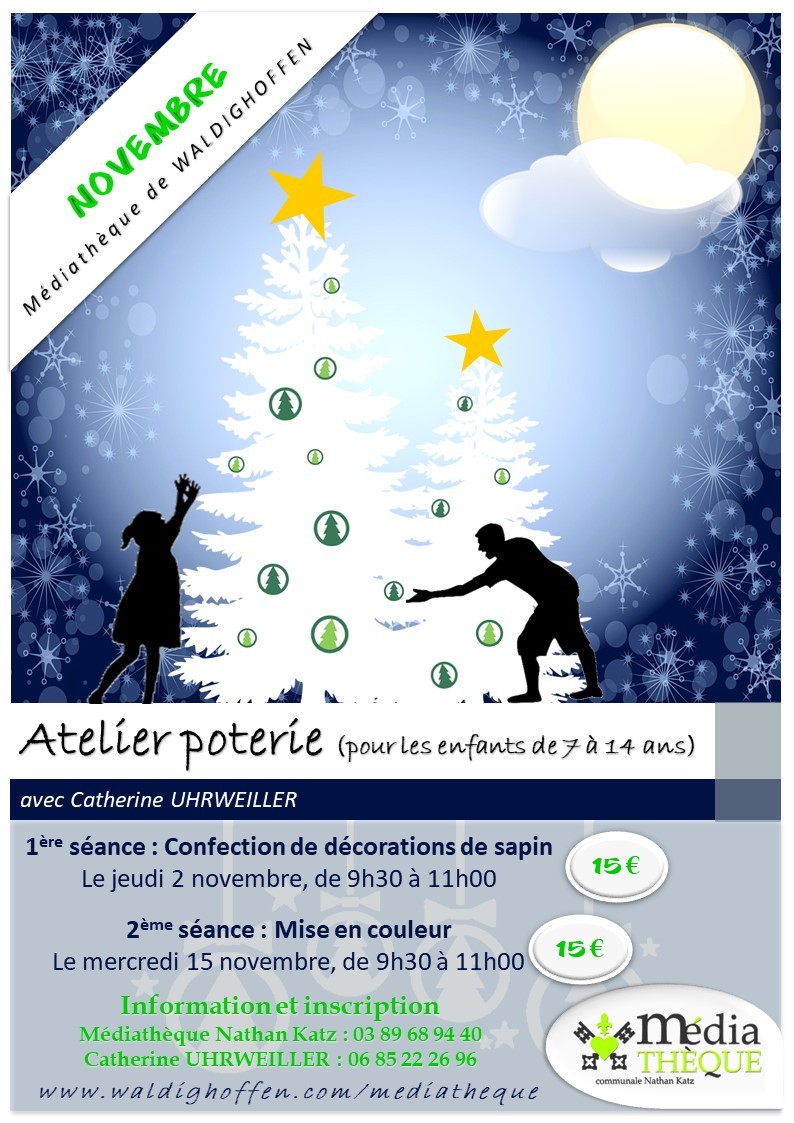 Affiche pour les ateliers poterie "Décoration de sapin" du mois de novembre 2017.