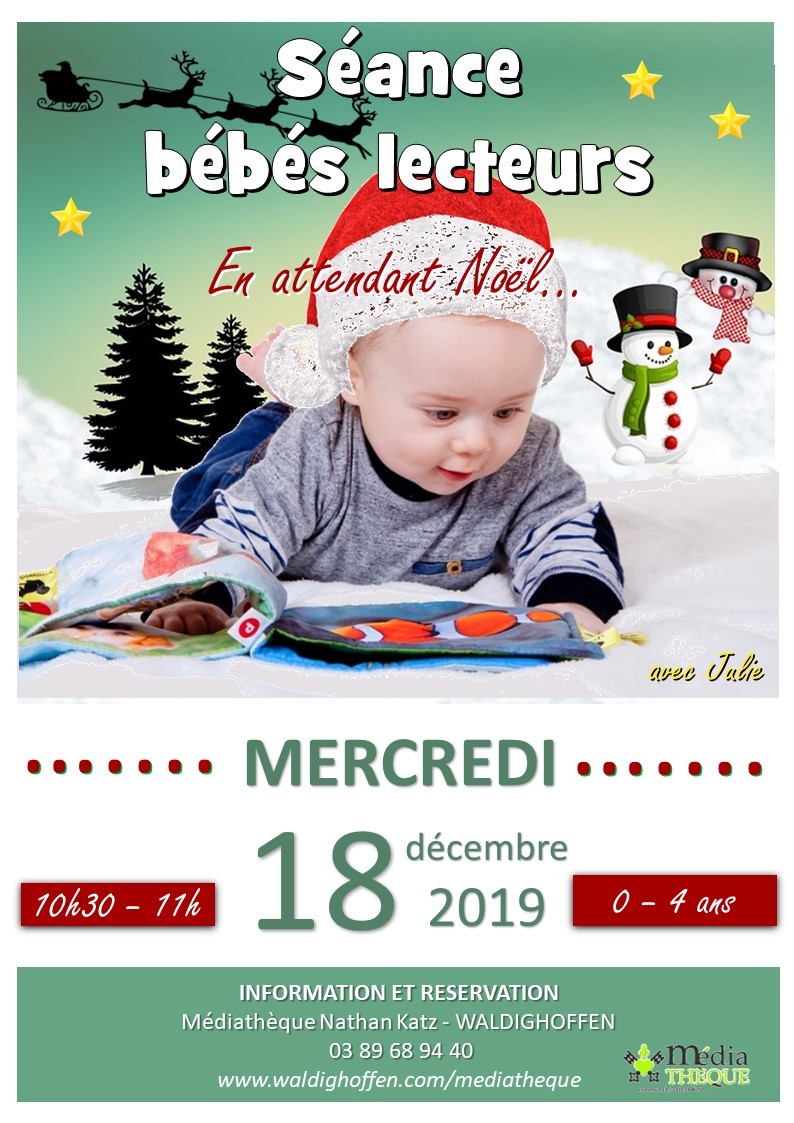 Affiche de la séance bébés lecteurs du mois de décembre 2019 : En atendant Noël.