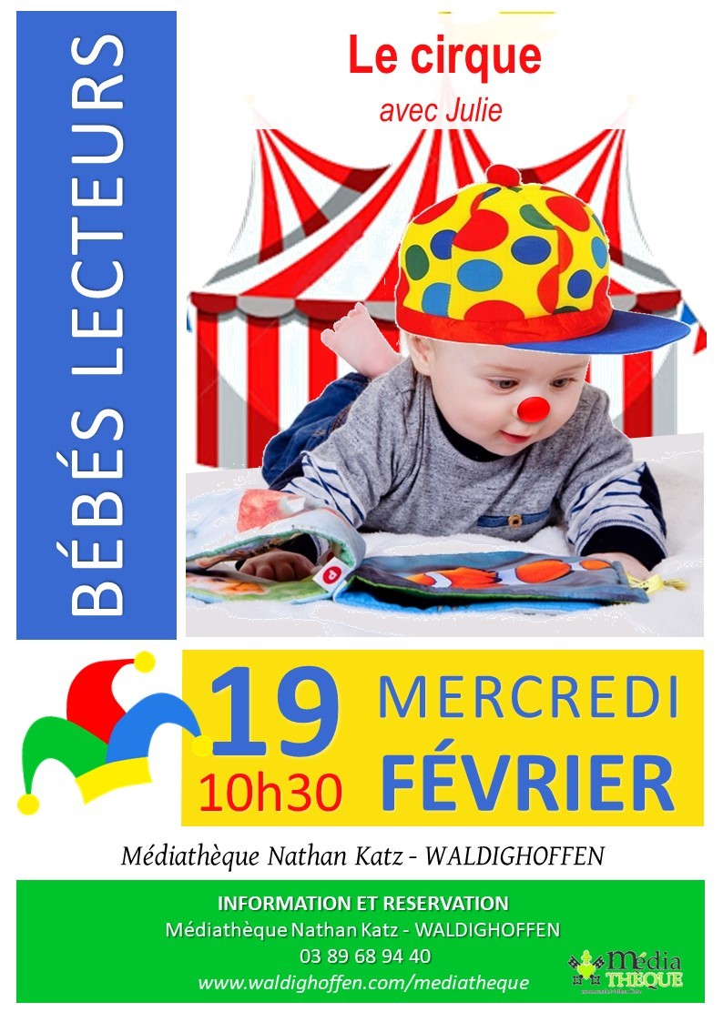 Affiche de la séance bébés lecteurs du mois de février 2020 : Le cirque.