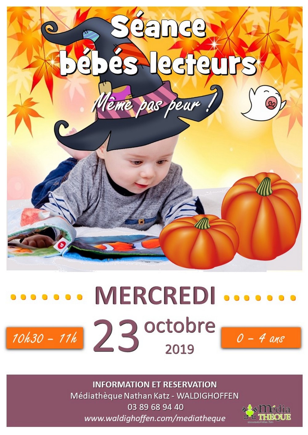 Affiche de la séance bébés lecteurs du mois d'octobre 2019 : Même pas peur.