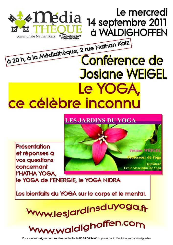 Affiche Conférence Yoga Josiane Weigel 14 sept 2011 à la médiathèque