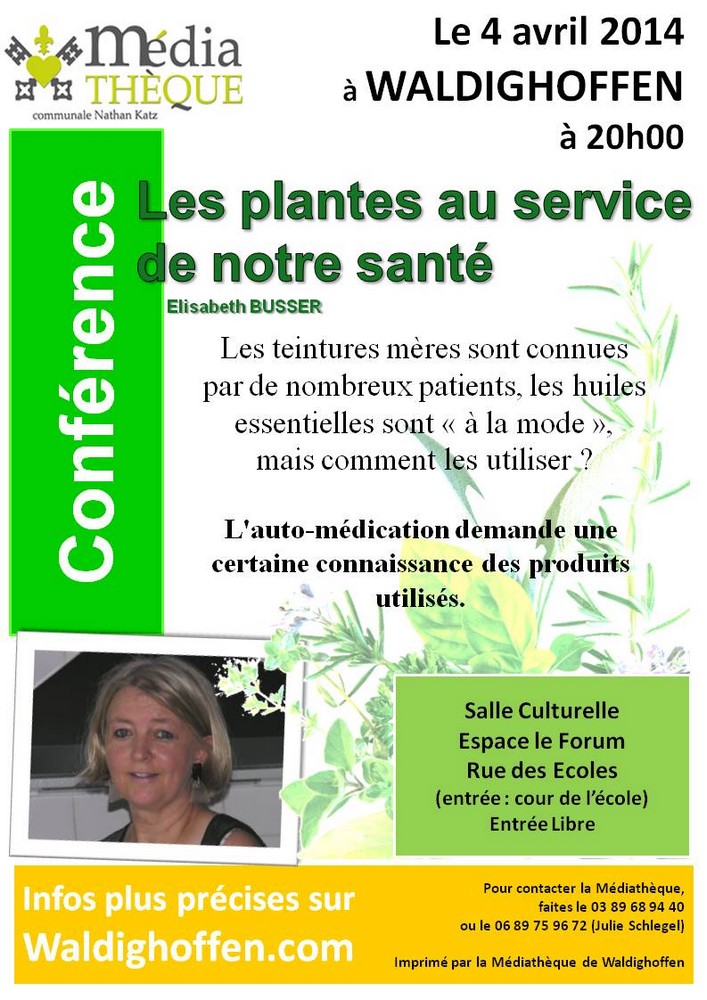 Elisabeth BUSSER propose une conférence : Les plantes au service de notre santé, le 4 avril 2014 à WALDIGHOFFEN.