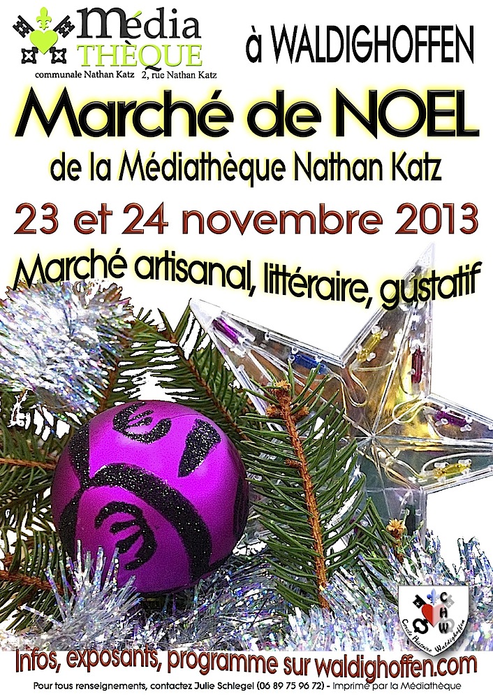 Marché de Noël organisé par la Médiathèque Nathan Katz de Waldighoffen les 23 et 24 novembre 2013, avec le Cercle d'Histoire,les écoles et les exposants