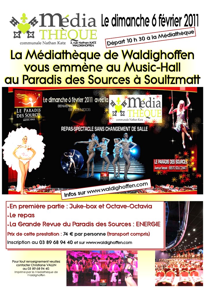 Affiche pour la sortie au Paradis des Sources du 6février 2010