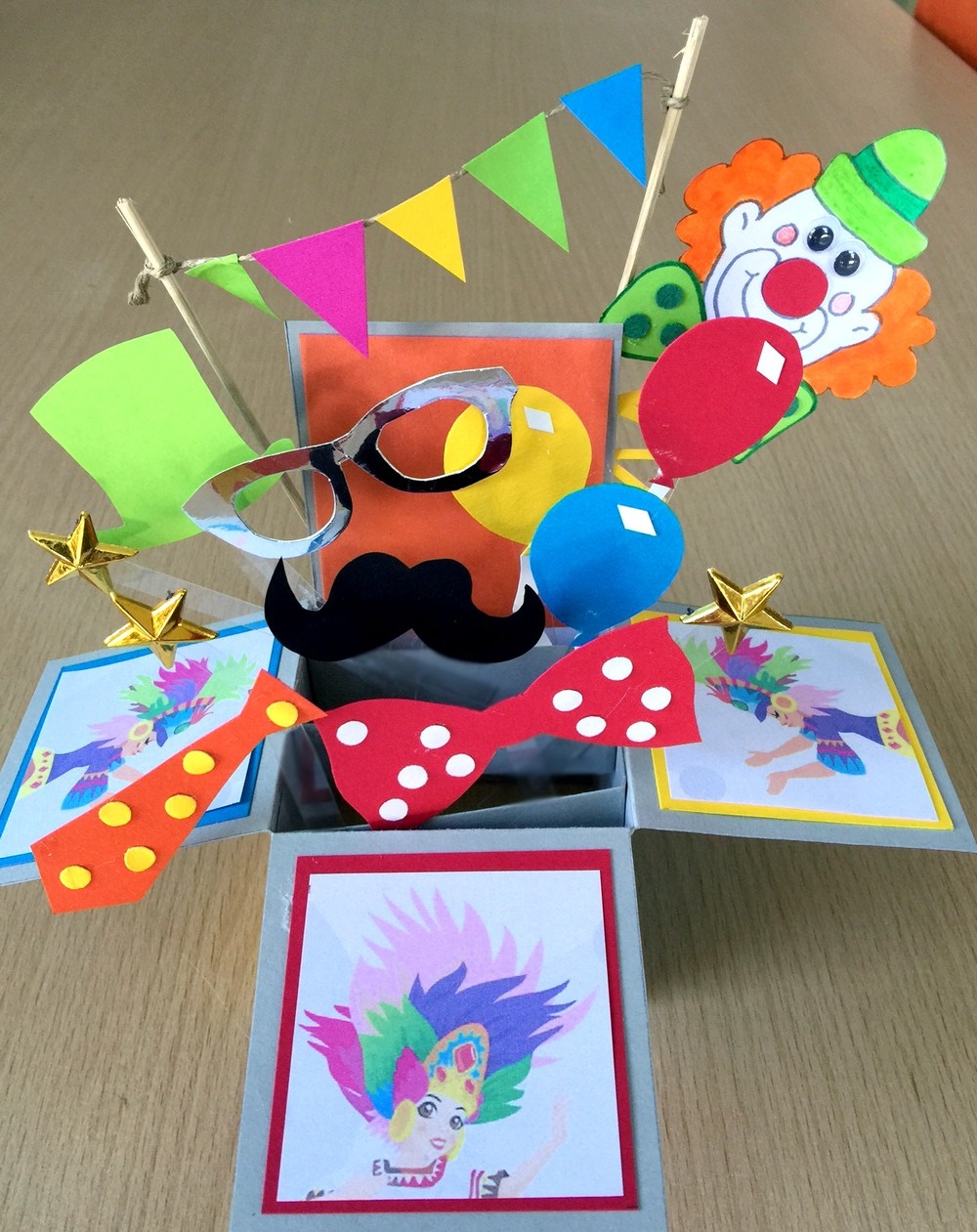Boite à explosion de l'atelier créatif de carnaval 2017.