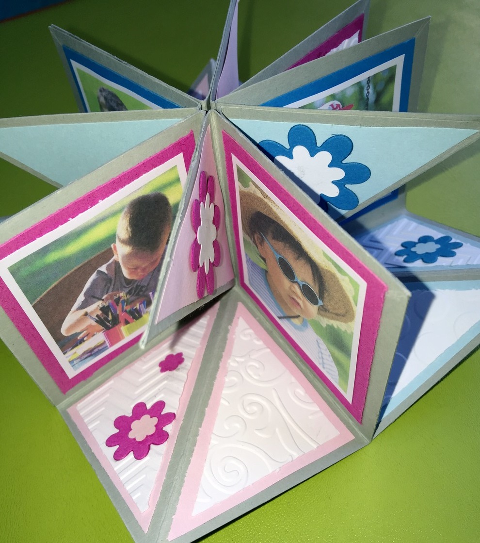 Mini album photo à poser réalisé lors de l'atelier créatif du mois d'août 2016.