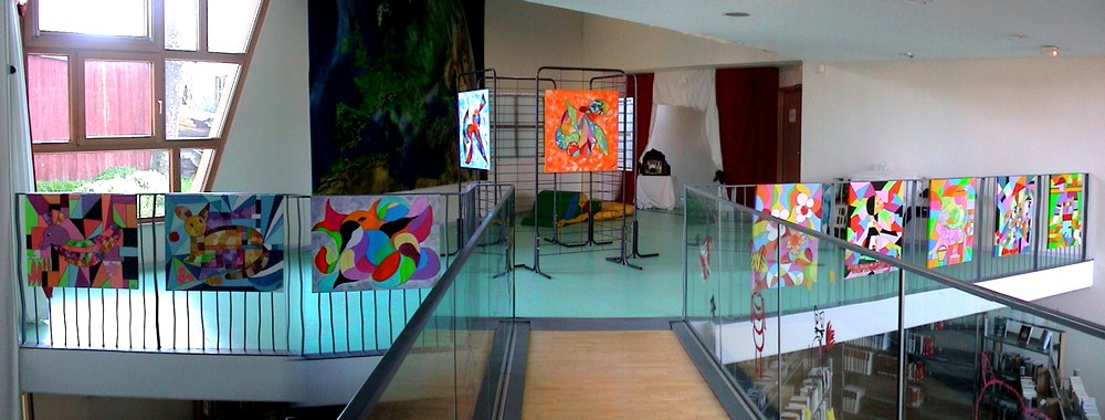 L'Expo de Christiane Demuth en train de s'installer à la médiathèque de Waldighoffen