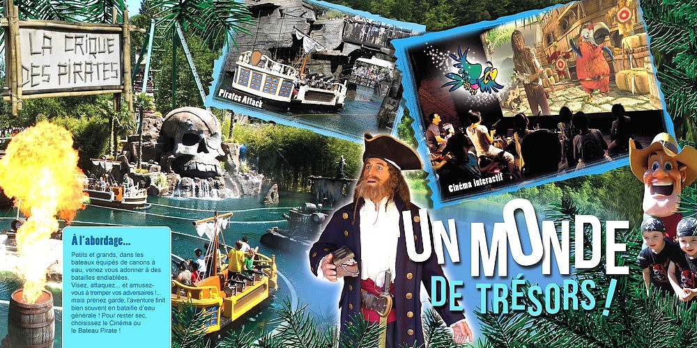 Dessin extrait de la brochure du Parc de Fraipertuis City, représentant le monde des pirates de ce parc des Vosges