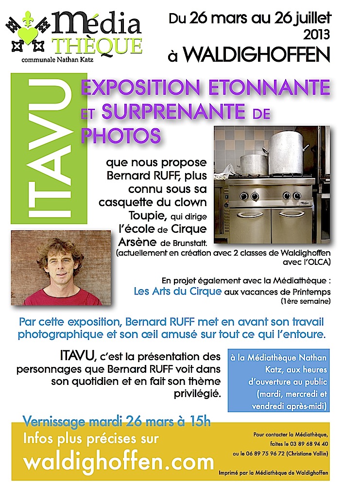 Affiche de l'expo Itavu de Bernard Ruff à la médiathèque de Waldighoffen du 26 mars au 26 juillet 2013