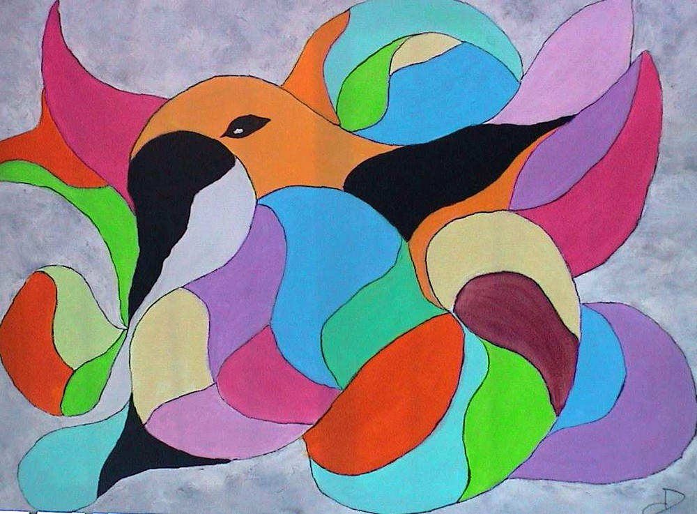 Autre oeuvre de Christiane Demuth à voir à la médiathèque. Les couleurs et les formes nous attirent.
