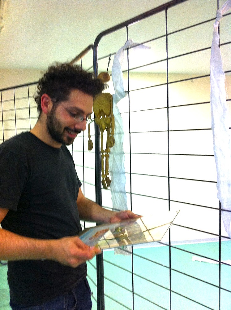 Alexandre Gimbel accroche une de ses oeuvres