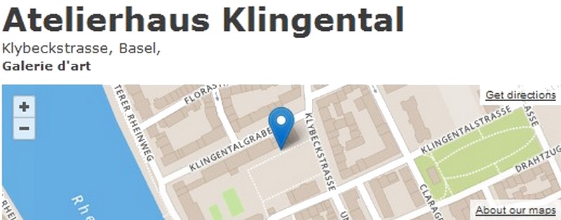 Vous êtes ici : Accueil Prochaines Animations Photographies événements Photos expo Cristina Spoerri Atelierhaus Klingental - Bâle - plan de situation