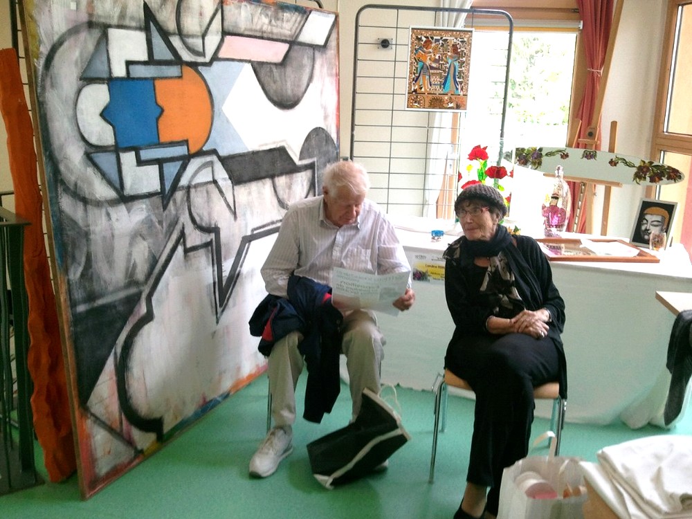 Vous êtes ici : Accueil Prochaines Animations Photographies événements Photos expo Cristina Spoerri Cristina Spoerri et son époux regardant l'affiche de l'exposition