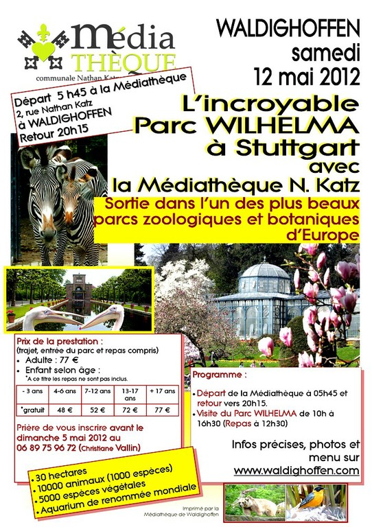 - Parc zoologique et botanique à Stuttgart, que la médiathèque de Waldighoffen propose de faire visiter le 12 mai 2012. Affiche de l'évènement.