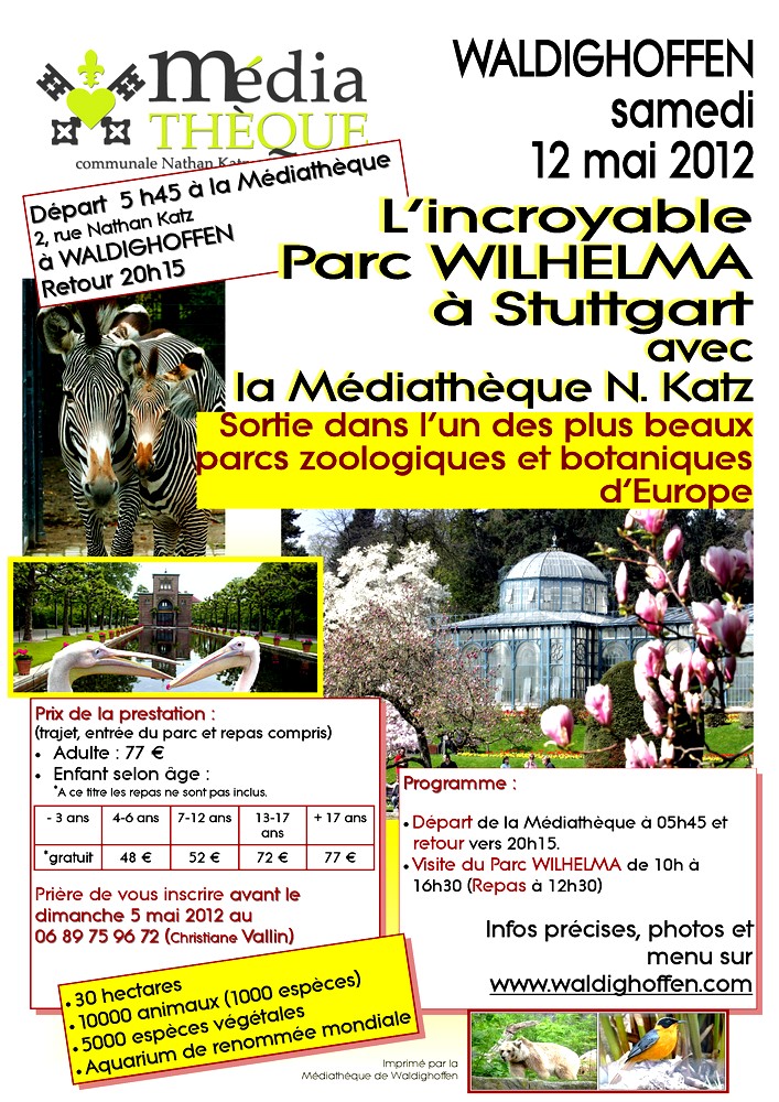 - Parc zoologique et botanique à Stuttgart, que la médiathèque de Waldighoffen propose de visiter le 12 mai 2012