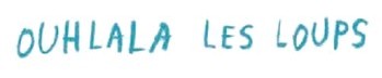 Titre du spectacle "Ouh la la les Loups" proposé par le Festival Momix 2012 à la Médiathèque de Waldighoffen. Titre en écriture d'enfant, de couleur bleue.