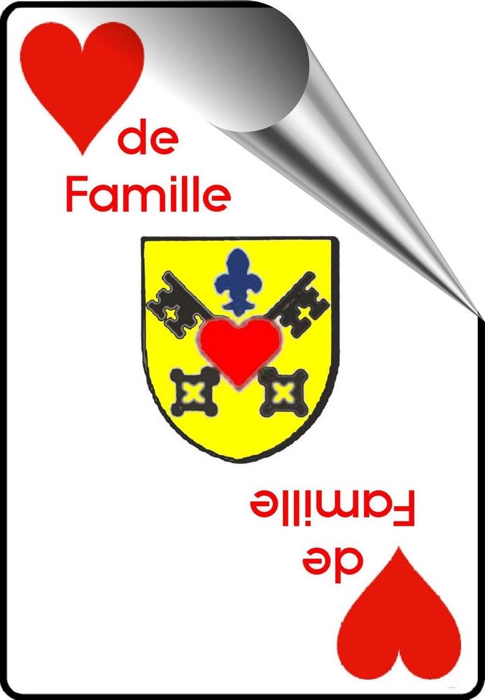 Le logo de l'association Coeur de Famille est une carte à jouer en partie pliée avec deux coeurs et le logo de la Waldighoffen en son centre.