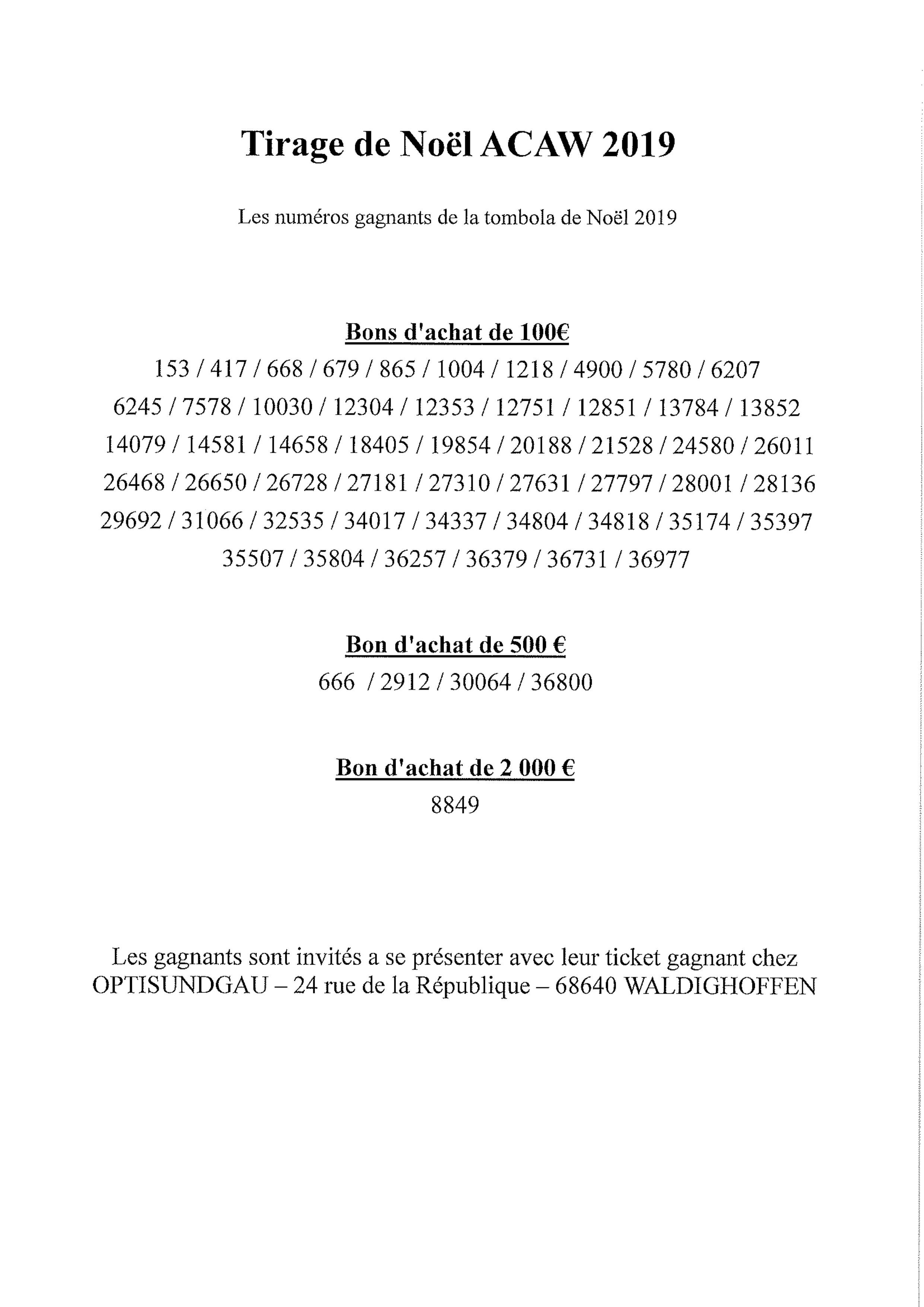 Les numéros gagnants de la tombola de Noël 2019