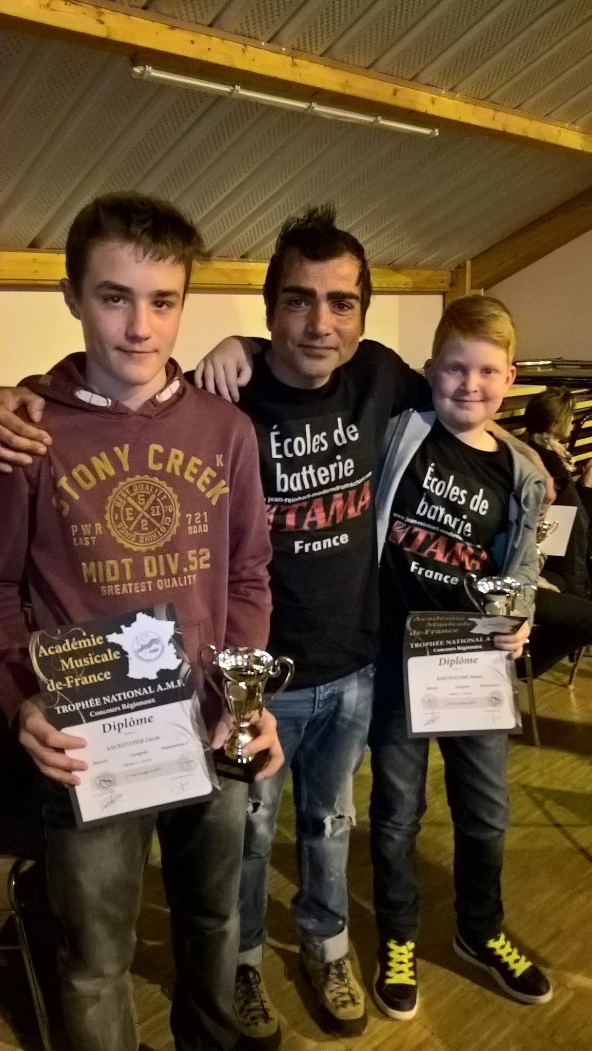 Jean Reinhart posant avec 2 élèves primés au Trophée national AMF.