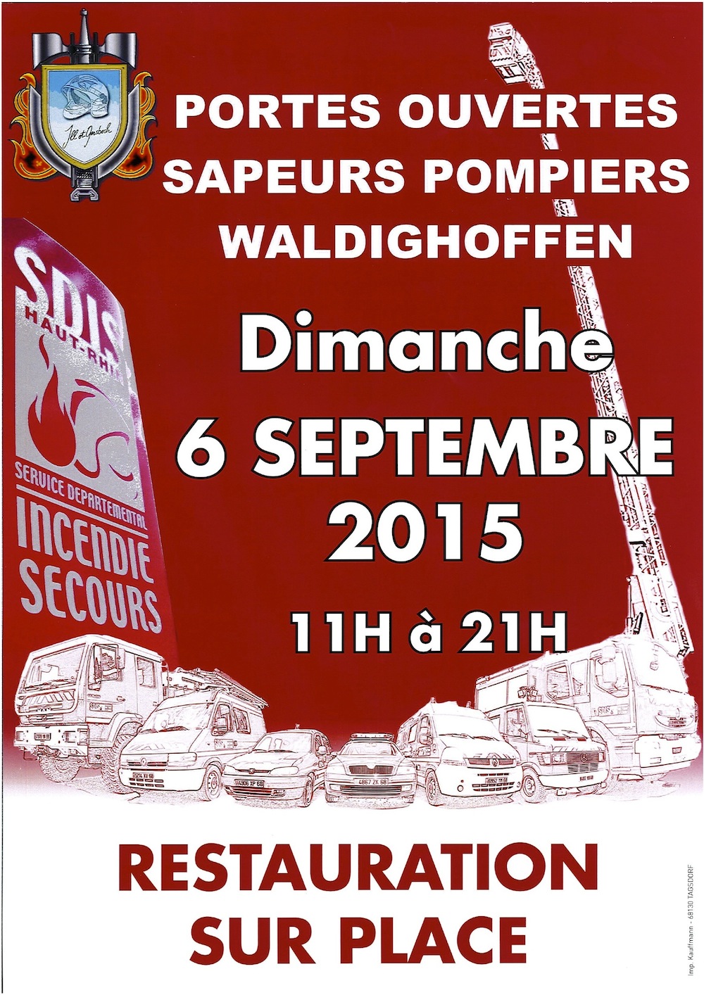 L'affiches des portes ouvertes du Centre Incendie Secours des pompiers de Waldighoffen le 6 septembre 2015.