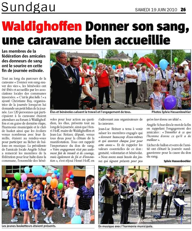 - Le Groupement des Donneurs de Sang Bénévoles du Haut-Rhin Sud organise une Caravane du Sang pour la Journée Mondiale du Don du Sang.