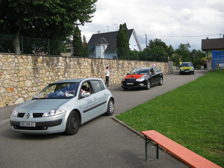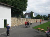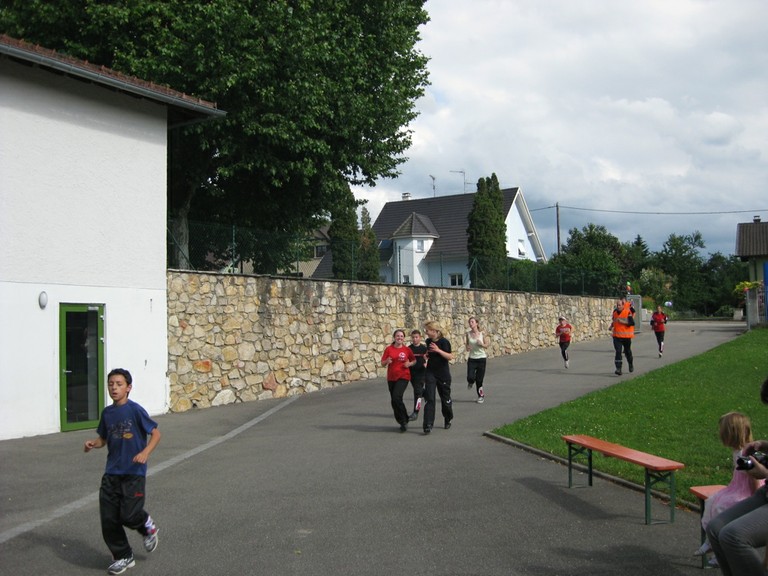 - Arrivée des enfants au pas de course, encadrés par M. Etienne VETTER du corps des pompiers de Waldighoffen, à l'occasion de la Caravane du sang 2010.