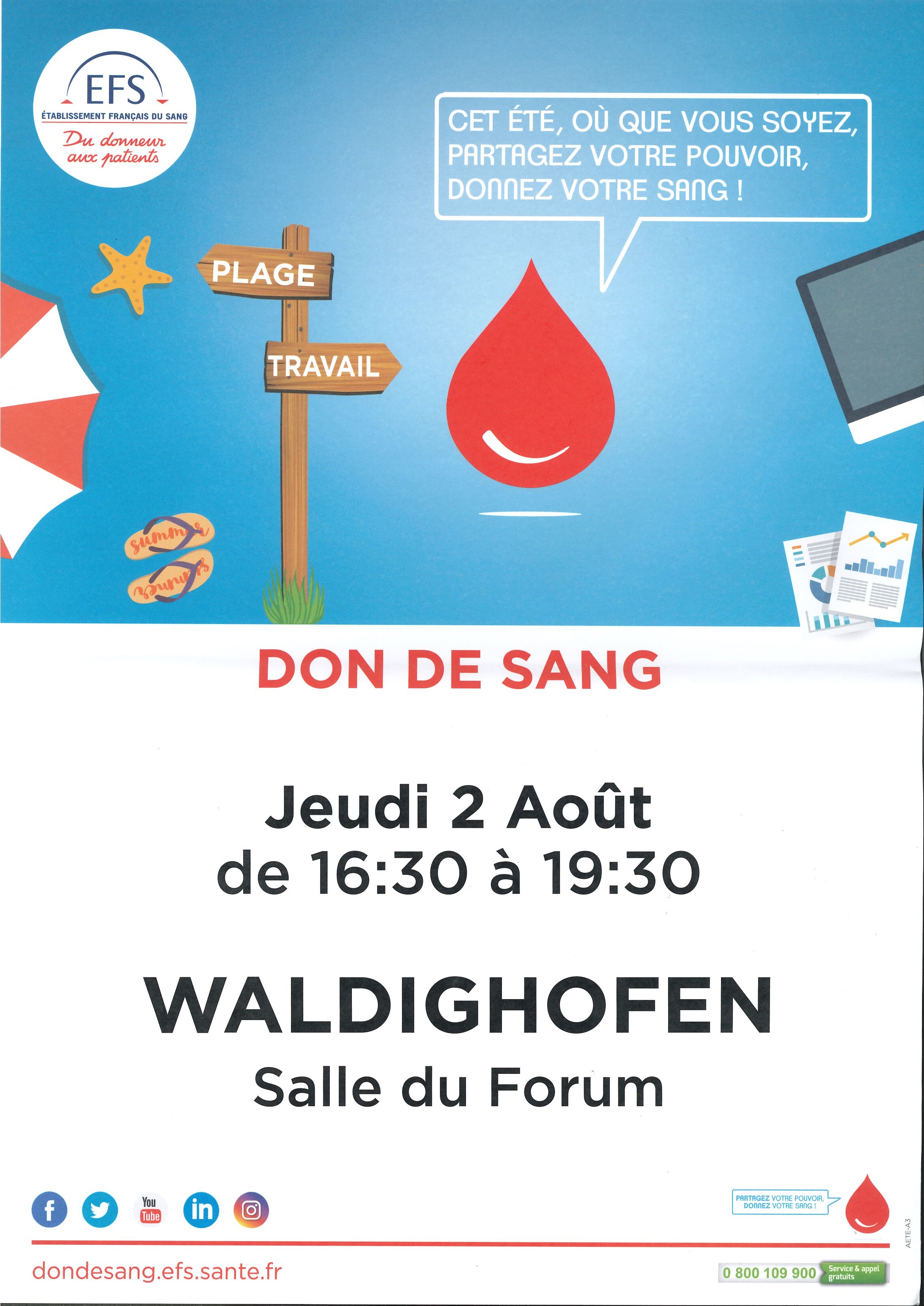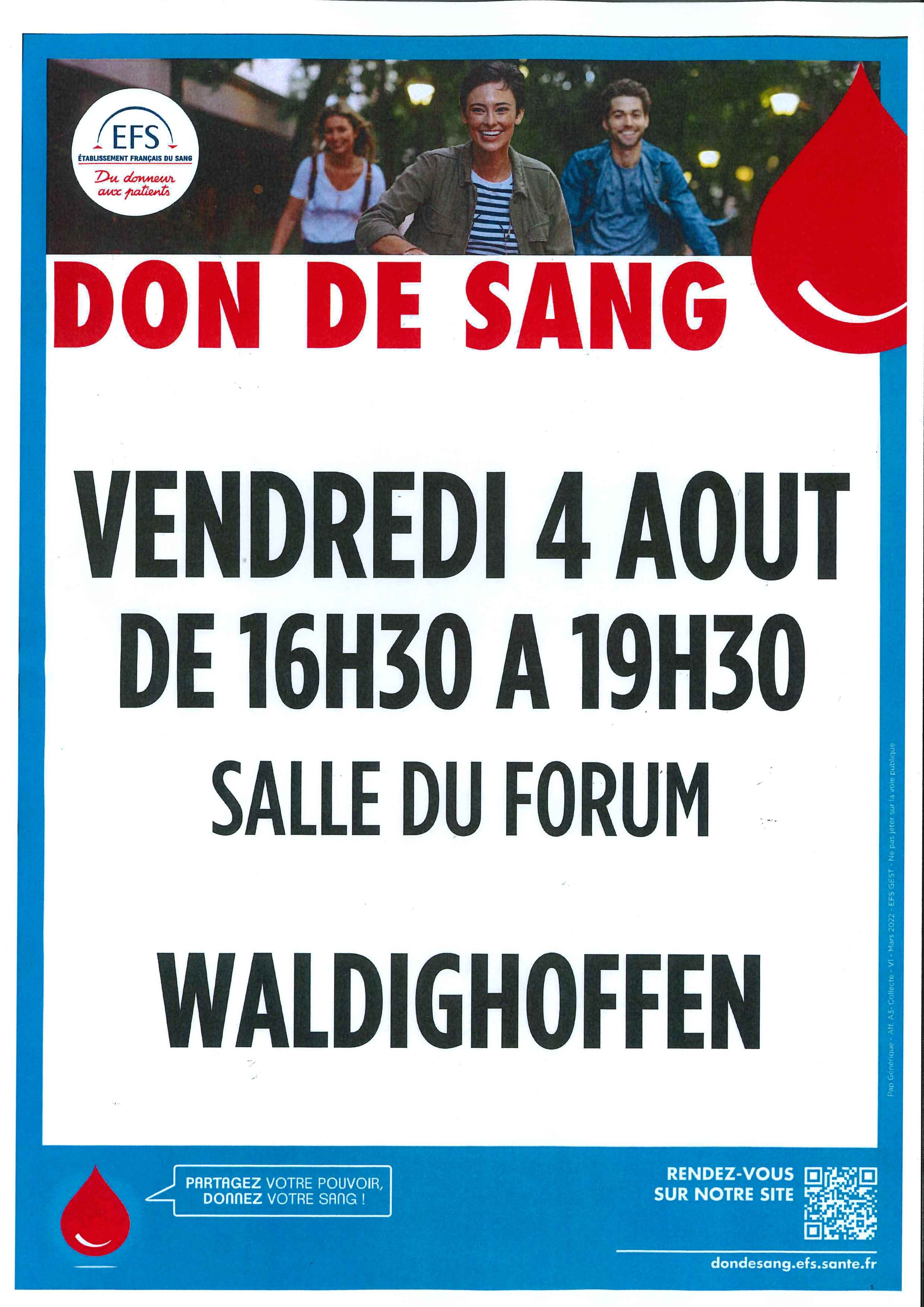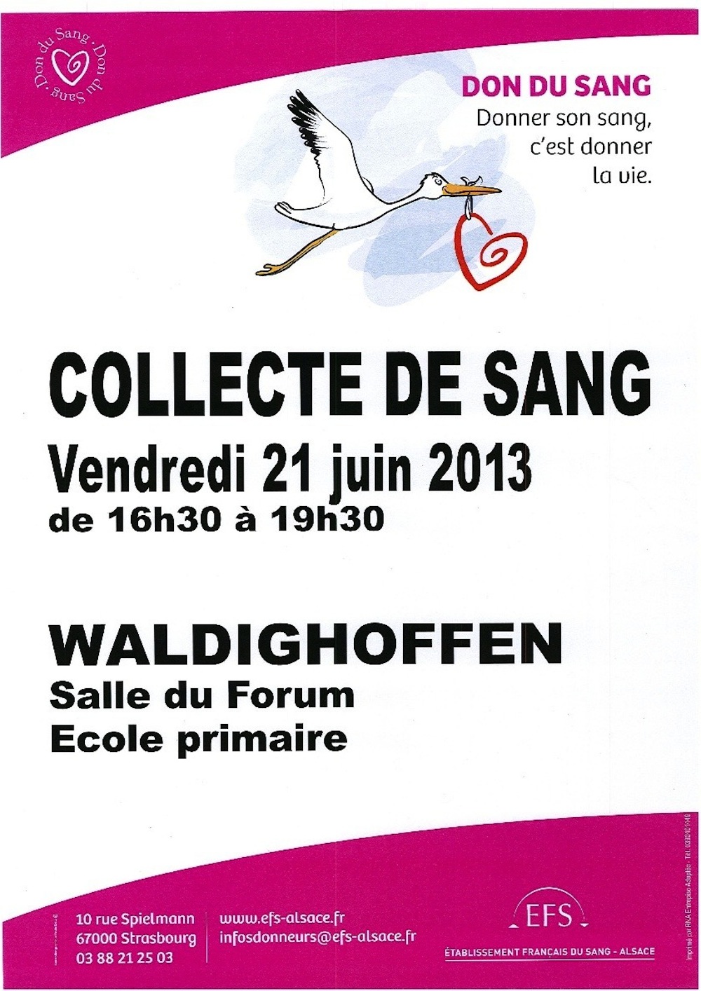 - L'affiche annonçant la collecte de sang organisée par l'Amicale des Donneurs de Sang de Waldighoffen en date du 21 juin 2013.