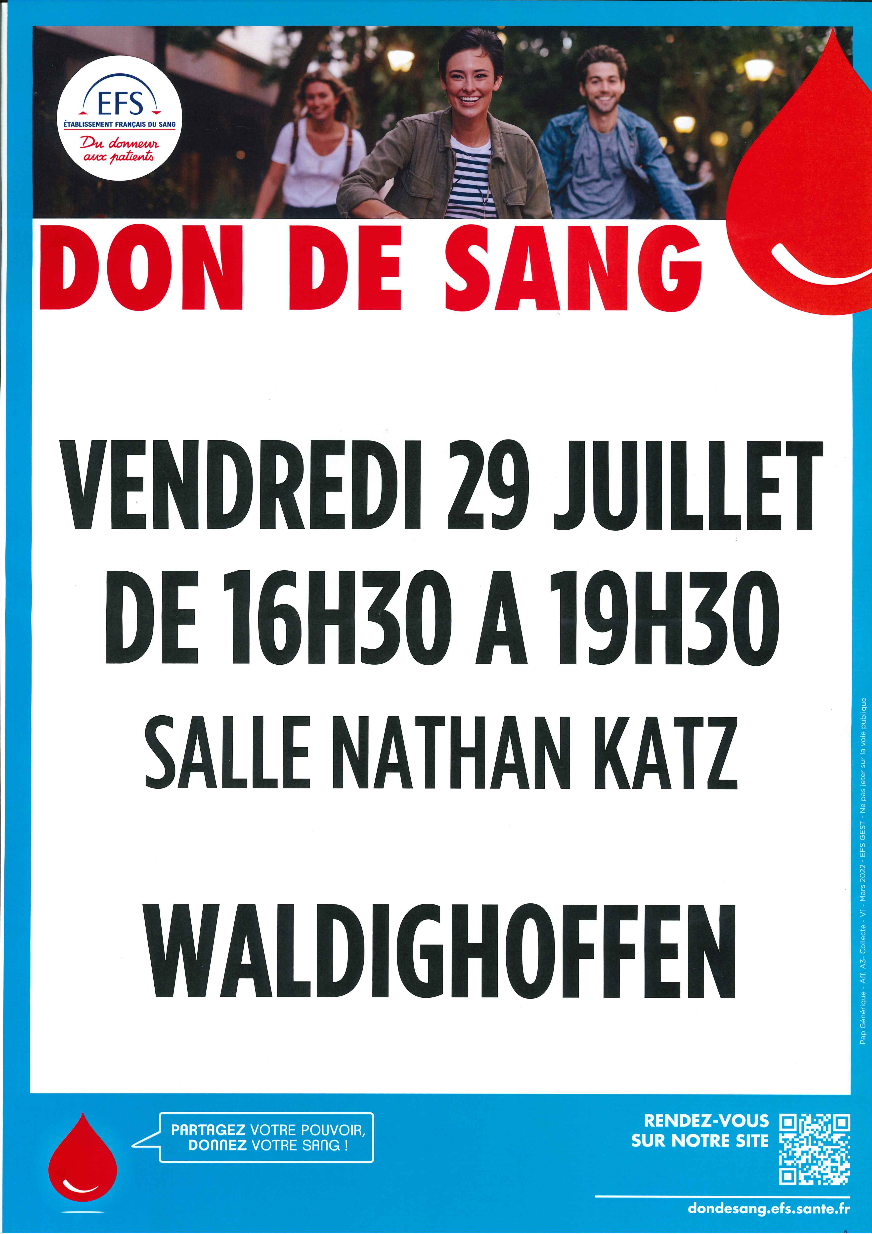 Affiche collecte de sang le 29.07.2022