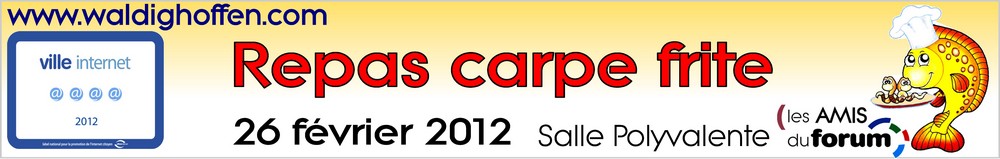Bandeau présentant le repas Carpe frite 2012 proposé par les Amis du Forum