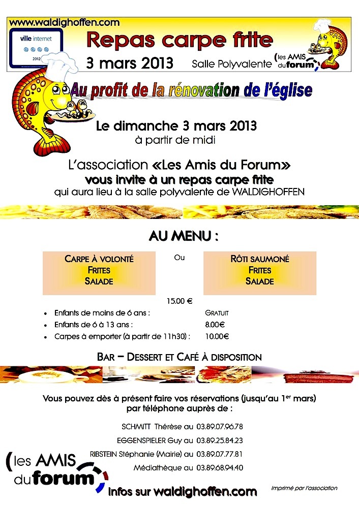 Information sur le Repas Carpe Frite 2013 des Amis du Forum de Waldighoffen