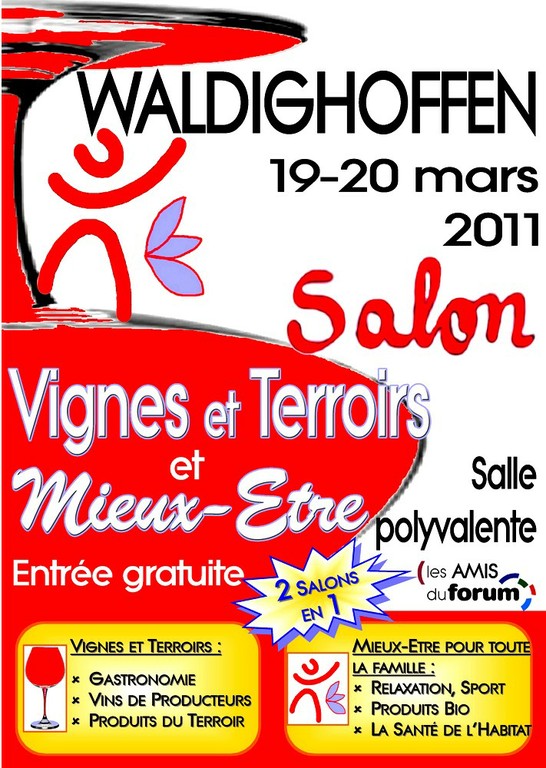 - Affiche présentant le Salon Vignes et Terroirs organisé par les Amis du Forum de Waldighoffen les 19 et 20 mars 2011 à la Salle Polyvalente Nathan Katz