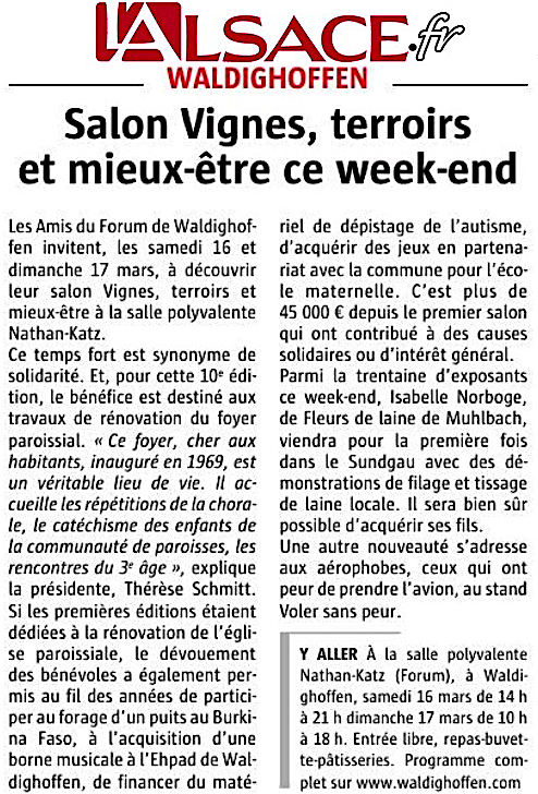 Article de l'Alsace présentant le Salon VTME 2019