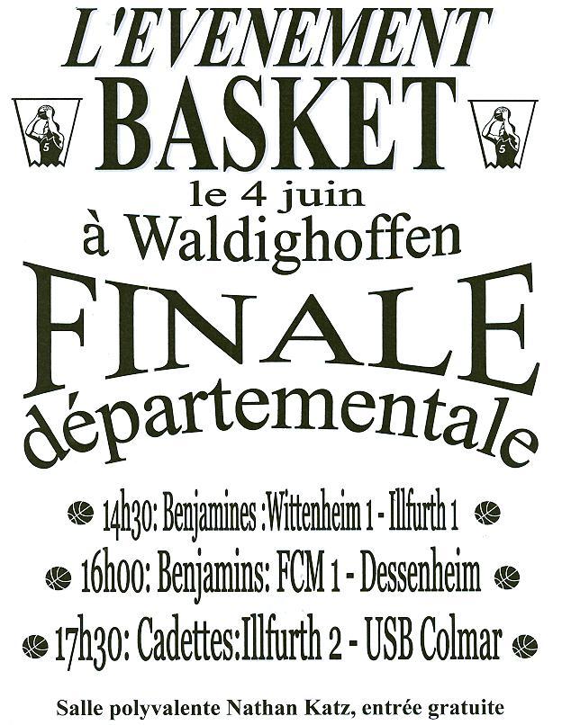 Affiche des finales départementales organisé par le basket-club CSSPP Waldighoffen le samedi 4 juin.