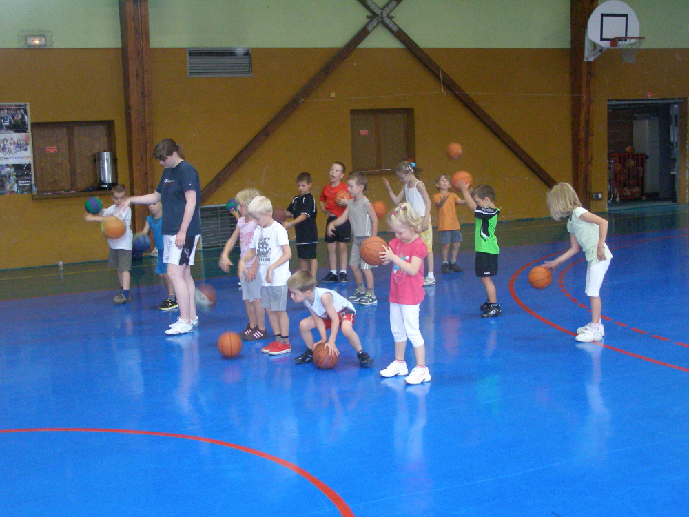 Exercice de dribble en marchant pour les petits. Pas facile tout ça.